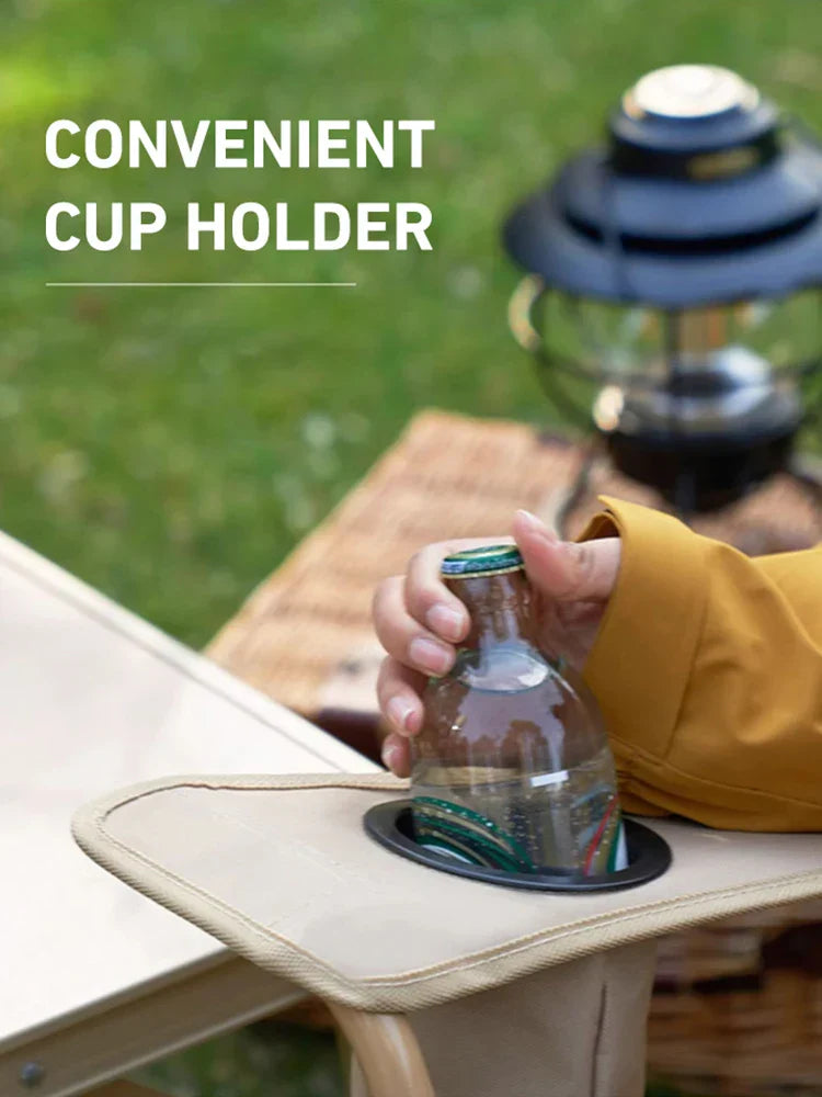 Built with 600D Oxford cloth and sturdy steel pipes, this chair supports up to 120kg while maintaining a portable, foldable design. Setup is quick and hassle-free, and with added features like a cup holder and side pockets, everything you need is within reach. Take it anywhere with the included storage bag—comfort and convenience now travel with you.